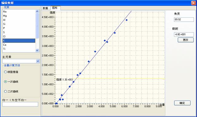 下例用EDX 3600B型对铝矿国家行业标准样GSR-5现实主义者各种测试的得到的谱图,目标曲线方程等相干数据资料: