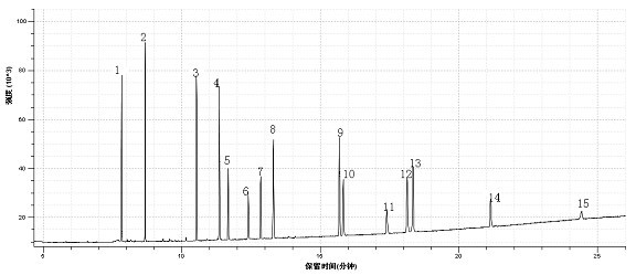 1、萘,2、苊烯,3、苊,4、芴,5、菲,6、蒽,7、荧蒽,8、芘,9、苯并[a]蒽,10、屈,11、苯并[b]荧蒽,12、苯并[k]荧蒽,13、苯并[a]芘,14、茚并[1,2,3 cd] 苝,15、二苯并[a,h]蒽,16、苯并[j,h,i] 苝