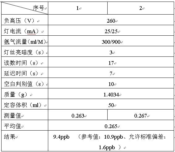 从原材料中称取0.20g玩弄于钢化玻璃烧杯里,参与8ml HCl,5mlHF, 8ml HNO3。蒸汽加热消解。冷却水后定容于100ml数量瓶中,参与5mlHCl,5%的硫尿和抗坏血酸悬浊液20ml。(同時做原材料缺员)。