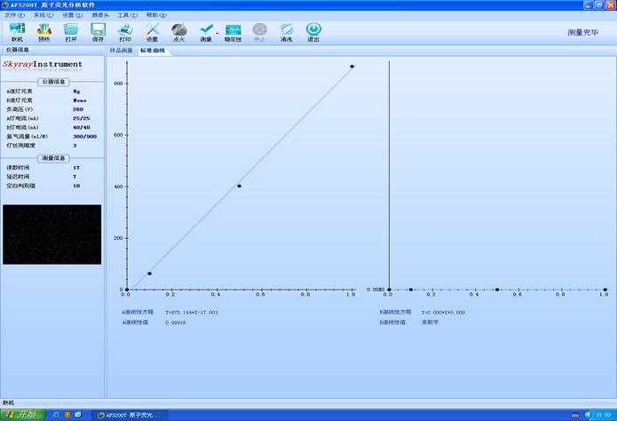 负压力(V):270;灯直流电压(mA):40/40;氩气热度(ml/M):300/800
